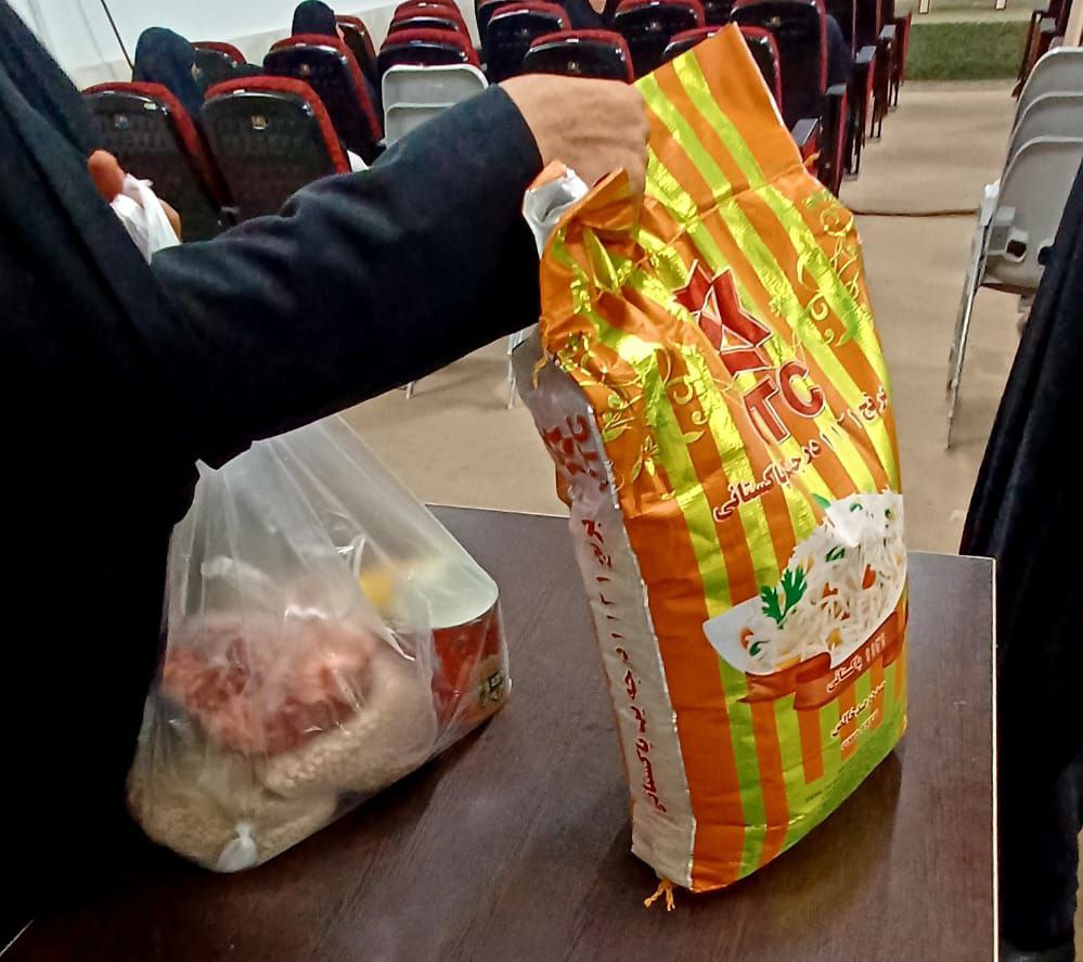 سبد کالای خانوارهای نیازمند بین خانوادهای کم بهرمند. که اکثر آنها شامل زنان سرپرست خانوار و کودکان بی سرپرست به صورت ماهانه تهیه و توزیع می شود.